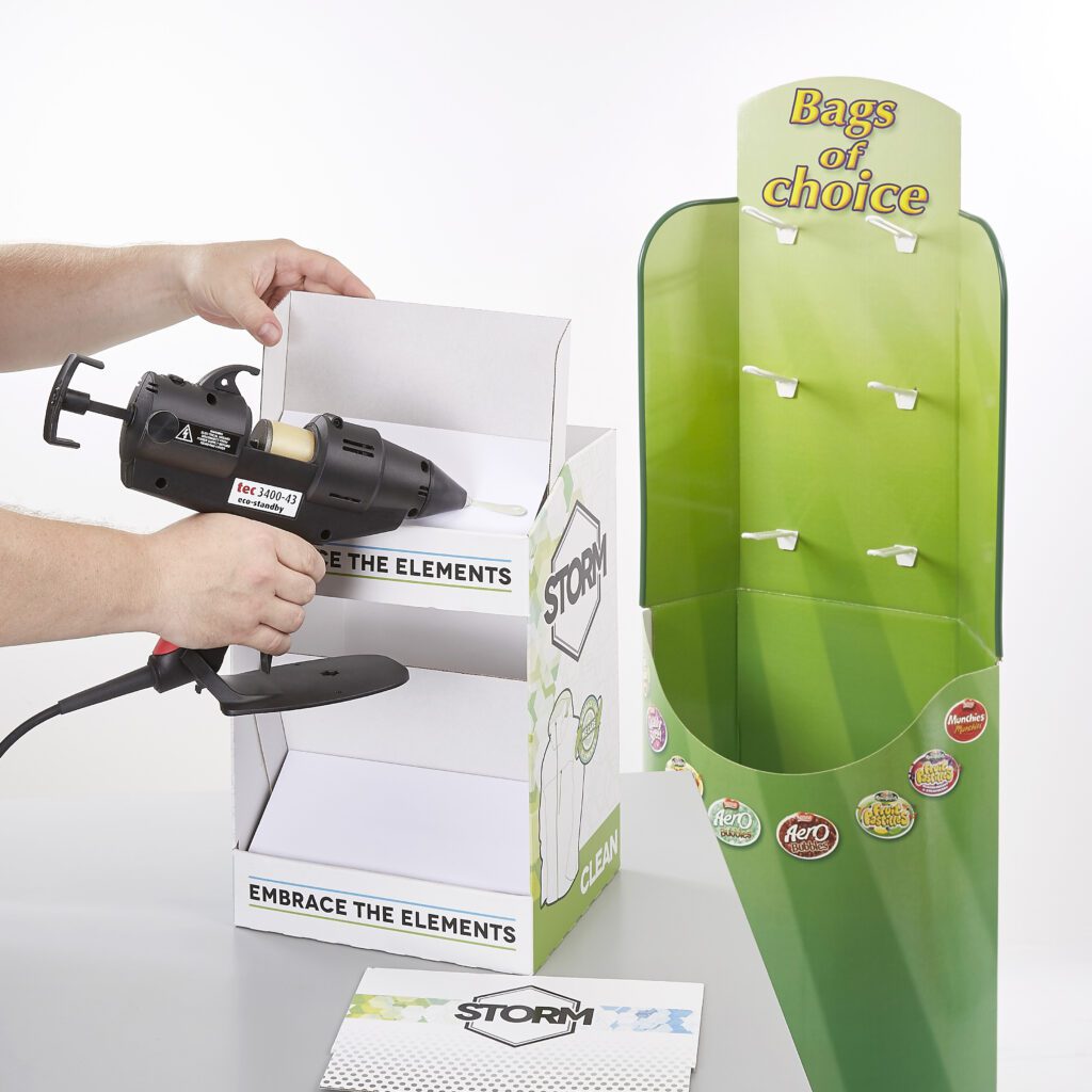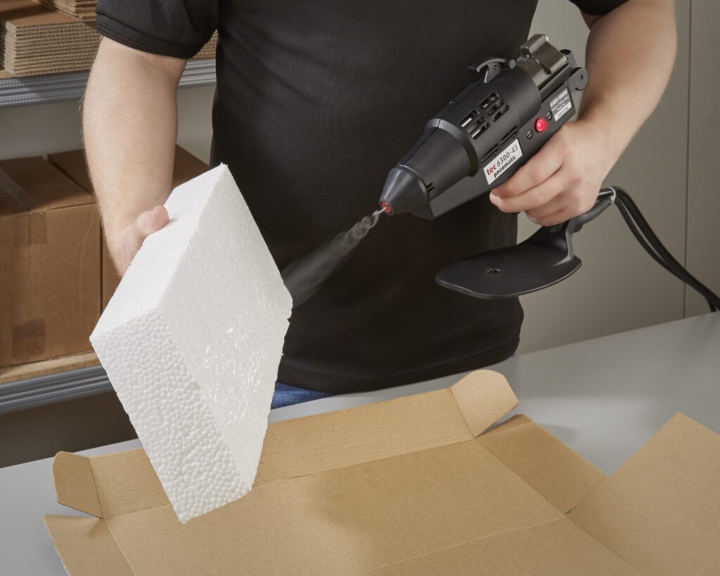 When applied with the unique spray applicators, casttec adhesives are safe to use with heat-sensitive substrates such as foam or expanded polystyrene. The thin filament extruded by the gun cools quickly while maintaining high levels of tack, ensuring no burning or melting occurs.