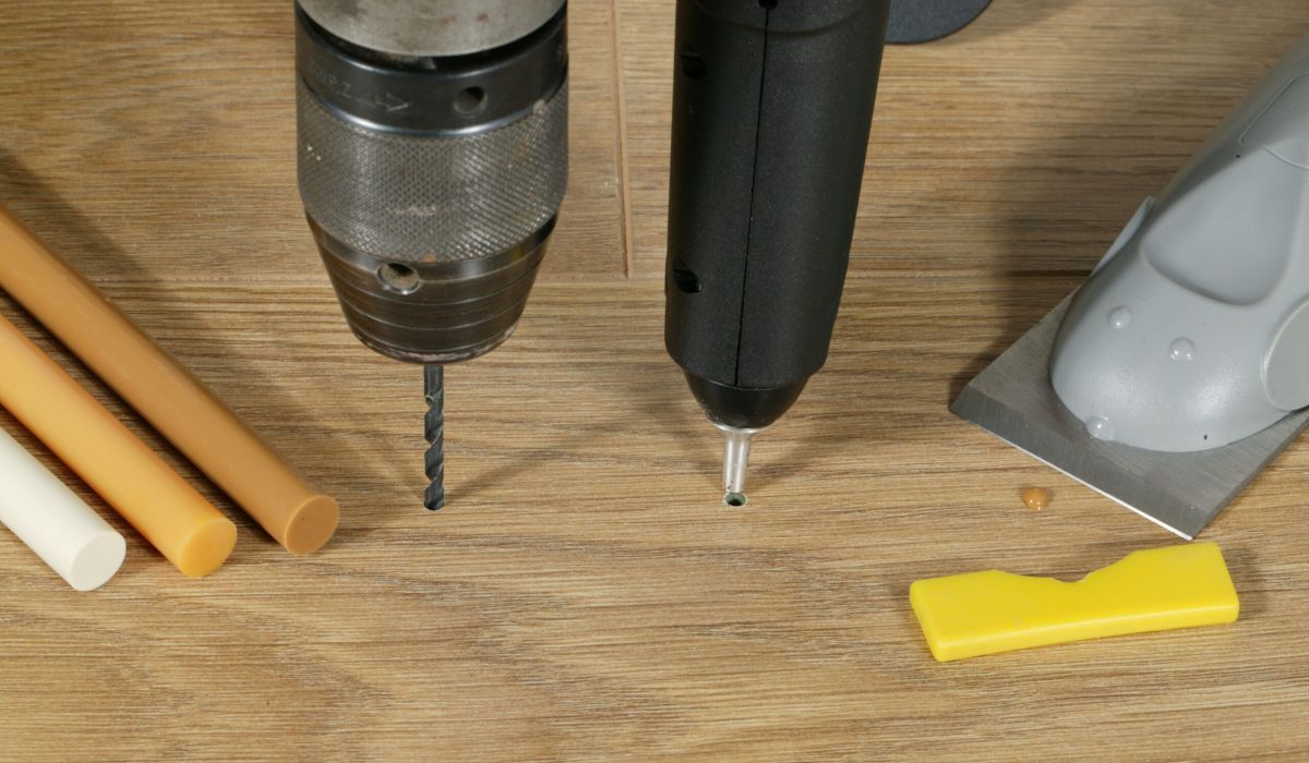 Requiring a single pilot hole and a hot melt glue gun, our solution removes the fuss associated with putties and epoxies more commonly used for these applications. After application, the area needs little more than planing and sanding before the final finish is applied.